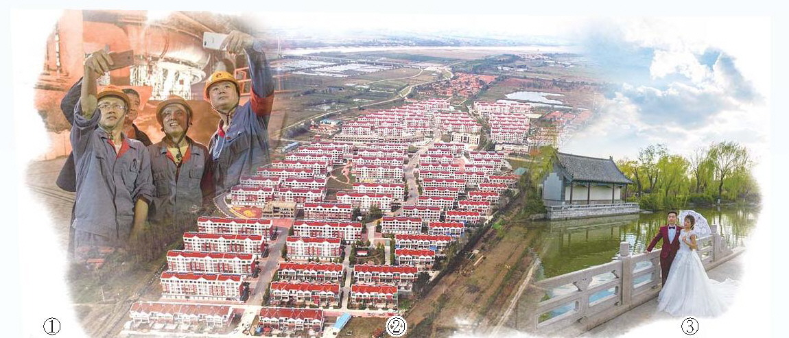 圖①:濟鋼煉鐵廠3號1750立方米高爐出完最后一爐鐵水,濟鋼在濟南的鋼鐵產線實現全線安全停產,工人在爐前合影留念。圖②:山東計劃3年完成60萬黃河灘區群眾遷建,圖為遷建后的東營市墾利區董集鎮楊廟社區。圖③:藍天白云下濟南大明湖景色迷人。山東對生態環保問題堅持零容忍出重拳,不解決不放過、打不贏不收兵,“水質”“氣質”大為改善。