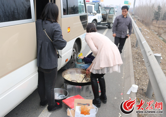 大眾網濟南2月28日訊 昨天下午,濟寧高速交警在京臺高速巡查時發現,一輛中巴車長時間停在應急車道上,幾個學生竟支起了鍋灶炒菜、做飯。學生們稱,他們雇了司機出來窮游,路上餓了就停下車做飯,沒考慮安全因素。