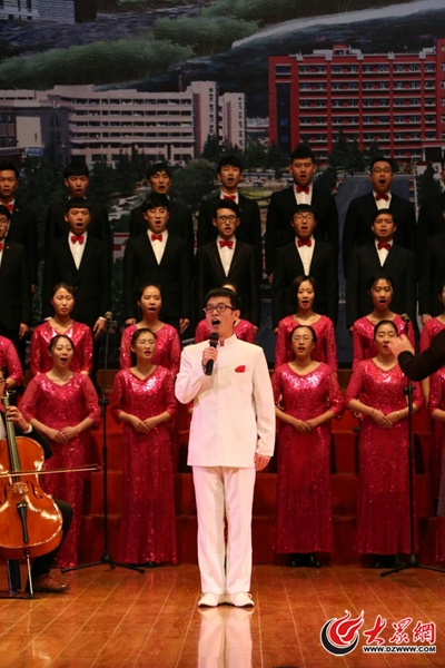 在一次團體合唱演出中,李國棟演唱歌曲。