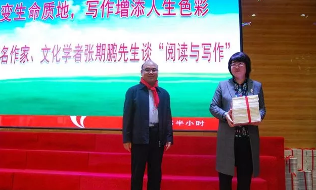 23日上午,在講座一開始,張期鵬首先聲情并茂地為該校師生朗誦了《我為少男少女們歌唱》,深情地回憶了自己曾是一名語文老師的過往,表達了對教師這一職業的尊敬。緊接著,張期鵬從一位朋友家孩子讀書快速成長的故事談起,以講故事的形式,結合自己的讀書生活經歷,圍繞“為什么要閱讀”、“中小學生如何閱讀”、“關于寫作的建議”等方面,為在場的廣大師生和家長現身說法,生動地詮釋了閱讀的力量。