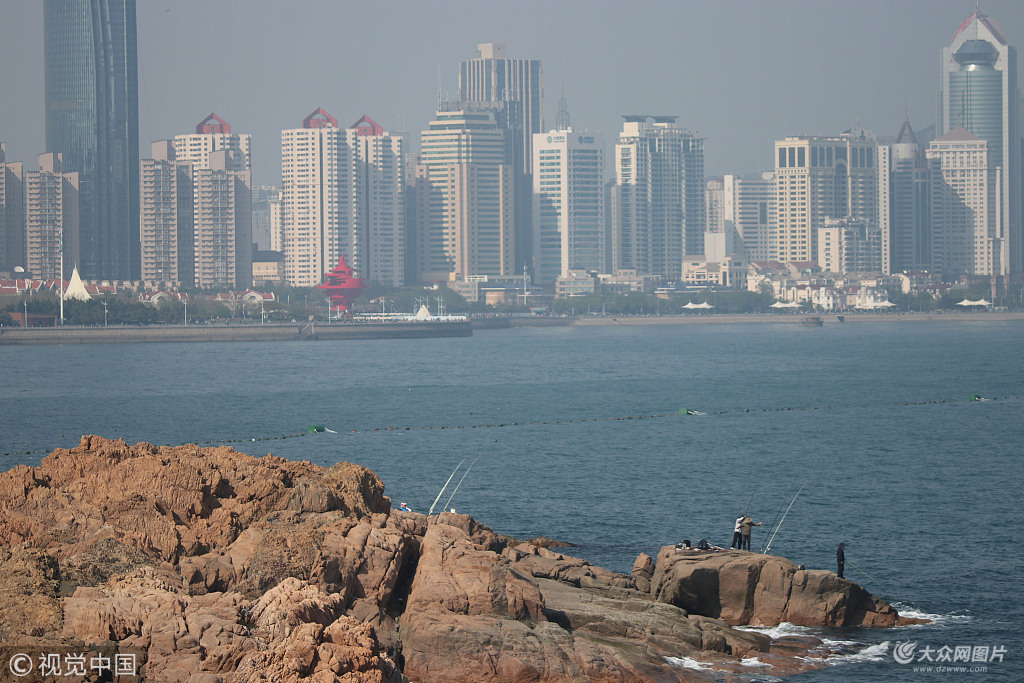 2018年5月4日,青島太平角風(fēng)景醉人,許多市民在此釣魚休閑。