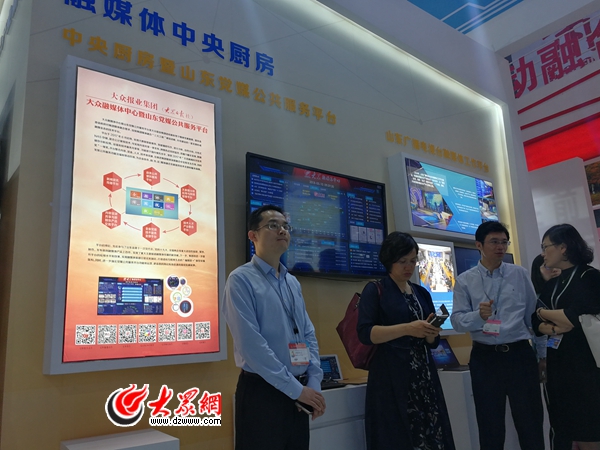 在山東館入口顯著位置,文化產業新業態版塊重點展示了以大眾報業集團(大眾日報社)中央廚房暨山東黨媒公共服務平臺為代表的媒體融合最新成果。