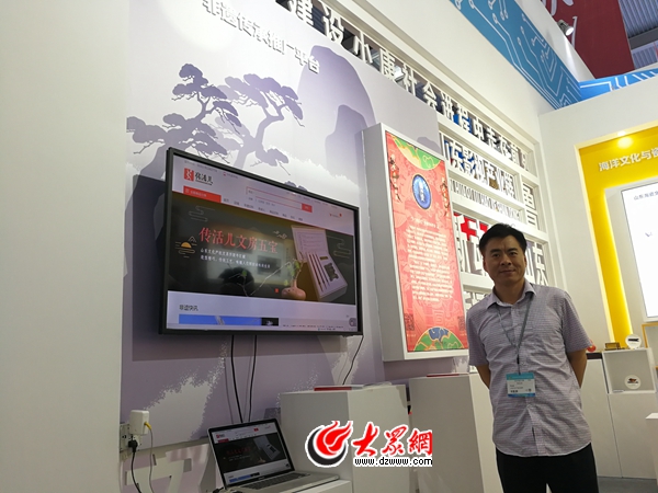 在“山東館”入口顯著位置,文化產業新業態版塊重點展示了以大眾報業集團(大眾日報社)中央廚房暨山東黨媒公共服務平臺為代表的媒體融合最新成果,以山東影視傳媒集團為代表的魯劇軟實力,以青島東方影都為代表的山東影視產業鏈成果等。同時,山東窄帶物聯網技術、智能穿戴、智能服務機器人等文化新業態、新技術、新產品也一一亮相。