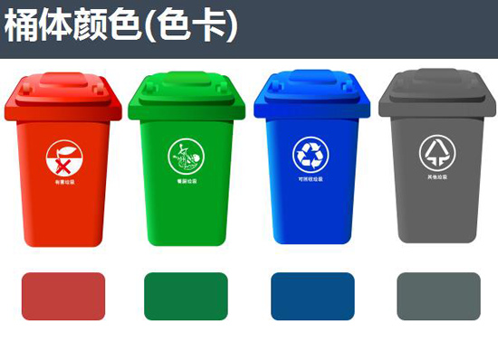 《規(guī)范》中規(guī)定的紅綠藍(lán)黑四中垃圾桶體顏色