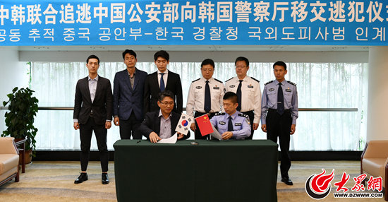 大眾網濟南5月17日訊 大眾網記者今天從山東省公安廳獲悉,5月17日,中韓兩國警方在山東青島舉行中韓聯合追逃行動移交犯罪嫌疑人儀式,中國公安部向韓國警察廳移交了韓國籍逃犯金茂元,這是中韓聯合追逃行動取得的又一重大戰果。