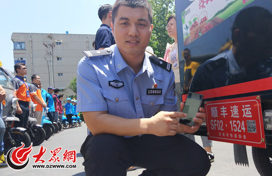 今天上午,韻達、順豐等快遞企業(yè)在濟南交警支隊展示了印有識別號牌的快遞車。記者看到,車輛尾部的識別號牌上除了明顯的號碼,還印有二維碼。執(zhí)勤民警使用通過警務(wù)通掃碼,就能查詢到該車的出廠信息、所屬公司信息、公司負責(zé)人電話、駕駛員信息等,以便在執(zhí)法現(xiàn)場核對。