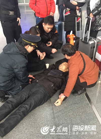 大眾網(wǎng)·海報(bào)新聞濟(jì)南1月9日訊(記者 賀輝 實(shí)習(xí)生 李泳志 通訊員 張汝迪)1月6日下午,一旅客在濟(jì)南西站換乘時(shí)突發(fā)心臟病暈倒,值班站長(zhǎng)立即通過(guò)廣播尋求車站內(nèi)醫(yī)護(hù)人員的幫助,并爭(zhēng)分奪秒叫來(lái)了120急救車,旅客經(jīng)救治及時(shí)脫離了危險(xiǎn)。