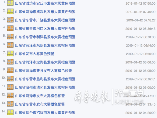 另據了解,目前東營廣饒、菏澤定陶等地已發布大霧橙色預警。