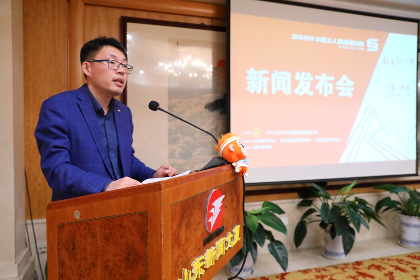419日上午,2018-2019中國三人籃球擂臺賽暨“我要上奧運”選拔賽第一階段華北分區賽新聞發布會在山東新聞大廈舉行。山東省籃球運動協會會長魏淑波,山東大眾日報融媒傳播有限公司董事長于江,山東省體育中心黨委委員、組織宣傳部部長王立雯,盈方體育傳媒(中國)有限公司籃球事業助理總監呂曉亮出席新聞發布會,介紹比賽相關情況并回答了記者提問。