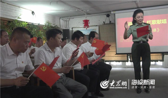 出自單縣的著名軍旅歌唱家陶紅帶領單縣在京流動黨員一同學唱《流動的黨旗》