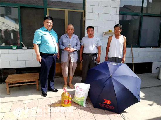 韓向勇(左一)為村內老人送去食用油、面粉等生活用品