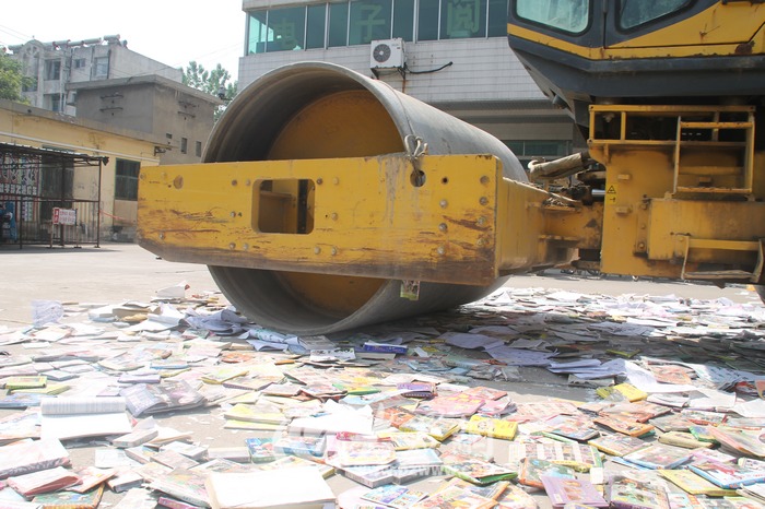 大眾網(wǎng)棗莊4月24日訊(記者 王震)為了保護(hù)知識(shí)產(chǎn)權(quán),打擊侵權(quán)盜版及非法出版物,棗莊市“掃黃打非”領(lǐng)導(dǎo)小組辦公室今天上午在棗莊市圖書館舉行2017年全市侵權(quán)盜版及非法出版物集中銷毀活動(dòng),并現(xiàn)場發(fā)放了“掃黃打非 護(hù)苗2017”綠書簽。據(jù)了解,此次活動(dòng)共集中銷毀非法音像制品及光盤1930件,非法圖書報(bào)刊4837份,共計(jì)6767件(冊)。