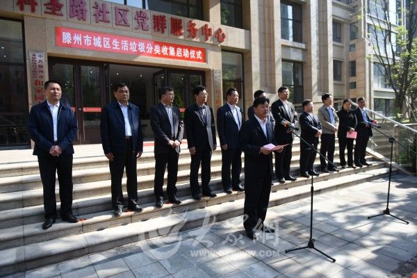 儀式由滕州市綜合行政執法局局長姜廣濤主持。滕州市綜合行政執法局黨委委員、環衛處主任胡桂云介紹了前期我市城區垃圾分類收集試點工作開展情況,滕州市委宣傳部常務副部長殷濤宣讀《垃圾分類我先行 美麗滕州齊共建》倡議書,滕州市人大副主任李廣憲和滕州副市長劉新共同為“滕州市垃圾分類示范小區”示范牌揭牌,并參觀和家園小區垃圾分類收集試點工作現場。