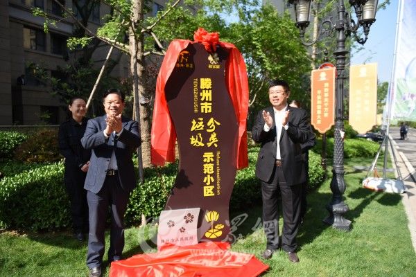 共同為“滕州市垃圾分類示范小區”示范牌揭牌