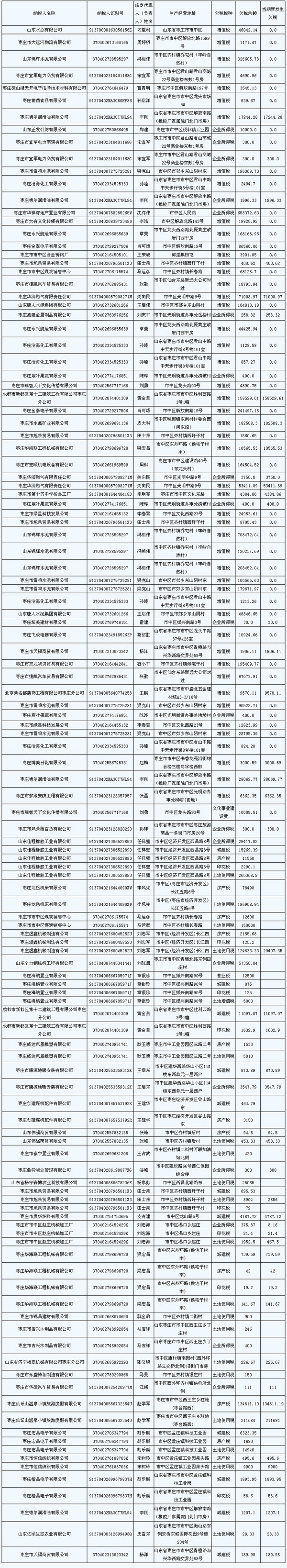 大眾網棗莊4月24日訊 近日,棗莊市市區國家稅務局、棗莊市地方稅務局市中分局發布欠稅公告決定書,對山東錦輝水泥有限公司等61戶納稅人的欠繳稅款情況予以公告,據統計,61戶納稅人共欠繳稅款5973507.4元。