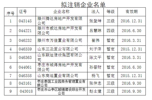 棗莊市住房和城鄉建設局要求,各區(市)住建局、棗莊高新區建設局依據屬地原則及時通知相關企業,逾期無異議將予以注銷。