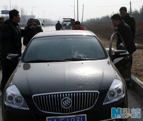 這是1月4日拍攝的在山東省泰安市持槍殺人案中被槍擊中的車輛。
