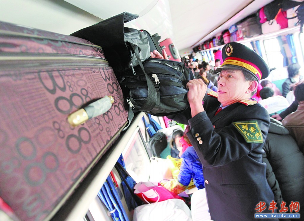 “現在就已經超員5%了,估計過了濟南,可能就要超員70%多了。”23日13時43分,青島發往西寧的K172次列車開始啟動,記者發現除了17、18號車廂,其他硬座車廂都已經滿員,在列車車廂的風擋處,也都坐滿了人,不少人都提著大包小包,由于行李架不夠,車廂的供電室邊上也都堆滿了行李。列車長韓成章告訴記者,從青島始發站上客情況來看 ,每節車廂已經超員五六個人,其中17、18號硬座車廂和部分臥鋪都是為沿途濰坊和淄博等地上車旅客準備的。