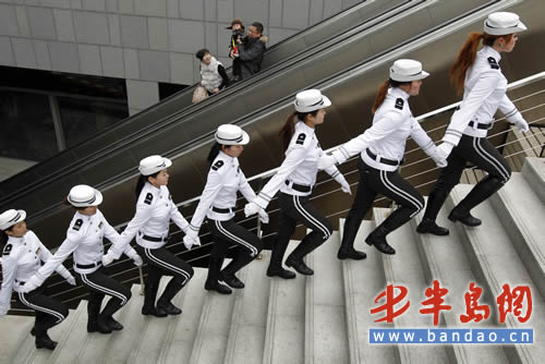 在青島海信廣場,一支由二十名姑娘組成的女子導車班成為一道靚麗風景。她們身著兩萬多元的工裝 、免費使用國際知名品牌的化妝品 、平均身高1.72米 ,雖然每天風吹日曬,但只要根據(jù)她們的指引,您一定會找到空車位。