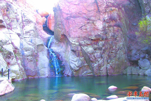 北九水潮音瀑水流很細 。