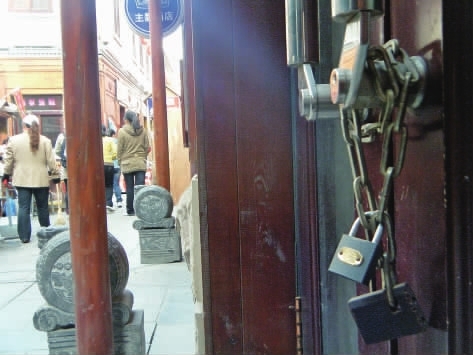 雖然正值用餐時間,除了江寧會館之外,整個劈柴院的人很少。在一段時間里,院內狹窄的通道上站的店員比游客都多。記者發現,原本經營特色小吃的劈柴院風情館里面漆黑一片,通往風情館小吃街的通道也被小吃車堵住了。原本在里面經營的12家特色小吃店不知去向,而風情館緊鄰的一家養生粥鋪也落了鎖,貼出轉讓的告示。膠東大包子鋪關門,重慶老鴨湯不見蹤影,經營工藝品的游藝居人去樓空,巷里的多個烤肉攤也空置了起來。