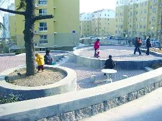 小區內唯——塊供人休閑的空地,不少老人小孩在玩,但沒有安裝健身器材。 本報記者 李珍梅 攝