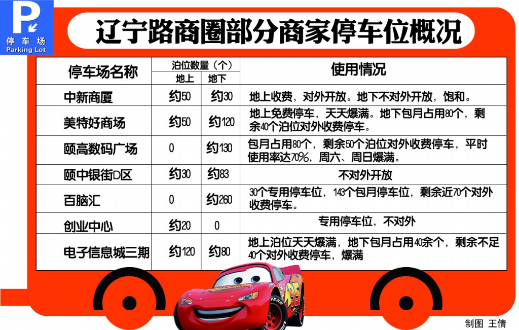 根據市北交警遼寧路中隊的調研情況,信息城周邊的眾多商場包括地上和地下共計有停車位970多個,除去420多個包月、專用或不對外開放的停車位后,整個商圈能夠提供的車位僅有 500多個,即便是加上章丘路、鐵山路、淄川路等小支路上的臨時泊位,所有車位加起來了僅有約700個左右,停車缺口很大。