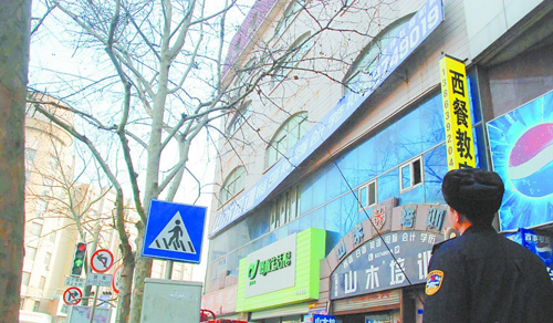 “去年5月查過他們一次,當時是拆了山木培訓三塊無手續廣告牌,總面積達到了100余平方米,誰想他們又私自安了一塊,從面積上說小了一些,不過同樣沒有辦手續。”據四方城管廣告科的執法人員介紹,他們在1月中旬的一次巡查中發現了這塊新增違法廣告,隨即進行調查。不過,一樓雖然有山木培訓的門頭,但里面已人去樓空,這家山木的分校已經搬到別的地方去了。因此,執法人員決定在1月19日拆除這個廣告牌。