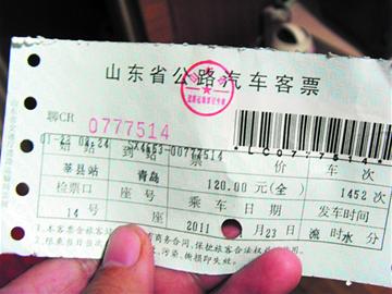 昨天上午8時24分,記者來到聊城莘縣長途汽車站,在售票窗口交上120元,買到了一張“莘縣至青島”的長途車票。售票員說,該車的發車時間是8時30分。