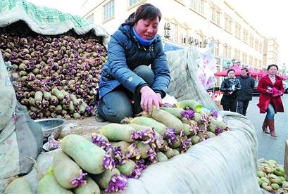 “今年蘿卜價格沒漲,十元錢三斤。”昨天,記者在現(xiàn)場看到,已經(jīng)有七八位心急的“蘿卜大王”已經(jīng)把車開進了會場,這也吸引了過路市民上前詢價。一位來自濰坊的業(yè)戶告訴記者,今年蘿卜產(chǎn)量還不錯,他運來了三噸蘿卜打算先試試行情,價格和去年沒有什么浮動,論斤稱3元1斤,如果要禮盒,干脆10元三根提走完事:“我已經(jīng)參加了5屆蘿卜會,年年都是第一撥來,最后才走,希望今年能有個好銷量。”