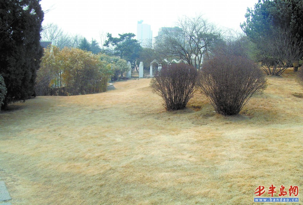 百花苑的草坪一片枯黃。記者 王悅 任金梅 攝