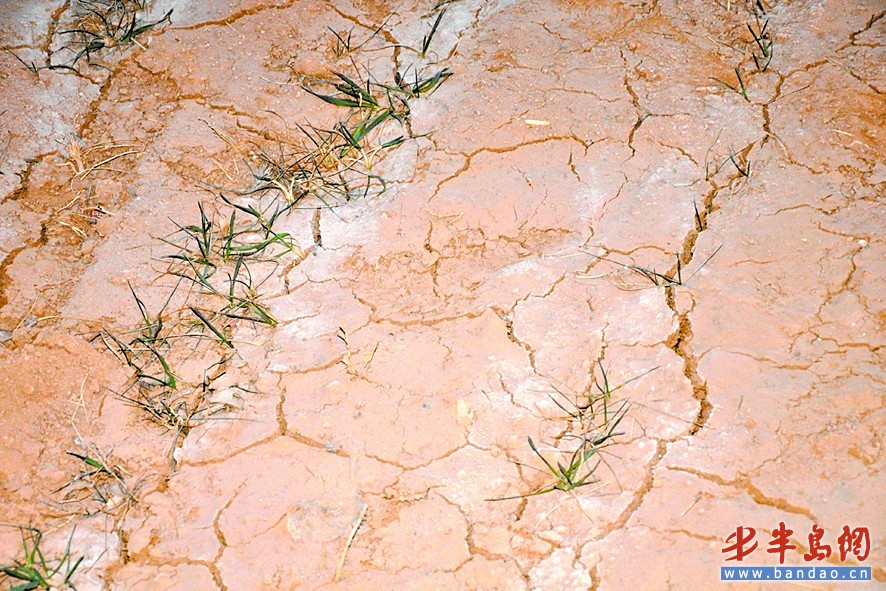 膠南市濱海街道的一處農(nóng)田地表已干裂。