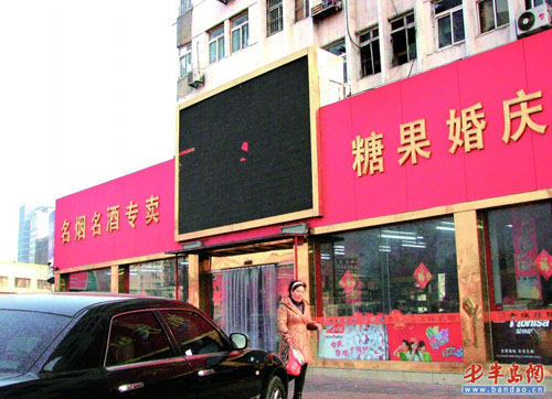 哈爾濱路與撫順路路口的電子顯示屏廣告屬于違法廣告。(照片由市執法局提供)
