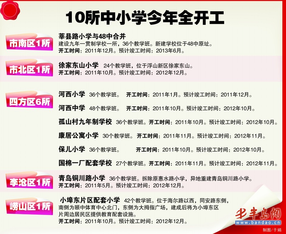 據介紹,明年李滄區、嶗山區等還將會陸續配建學校,比如李滄區將配建11所中小學,嶗山區將再建一個30個班的小學、18個班的初中,還將建部分幼兒園。