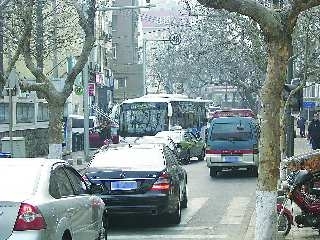 24日中午,記者來到萊蕪一路,從南頭走了50米左右,只見只有兩個車道的路上,停了十幾輛私家車,途經的221路公交車邊走邊停。