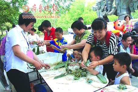 4日上午,濟南動物園在園內金牛廣場舉行了以“我給動物包粽子”為主題的端午活動。入園游客均可參加,6人一組,在3分鐘內包的粽子又多又好者獲勝。