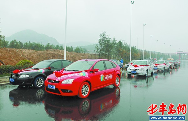 青島首批彩色輪胎雨中上路 2011-12-08 08:44