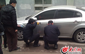▲3月27日下午,青島機場工作人員展示贈送給青島—法蘭克福航線首航機組人員的紀念品