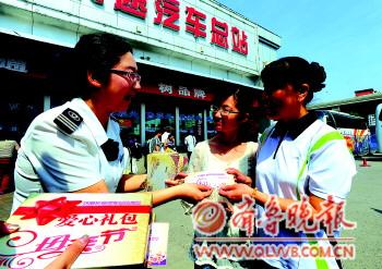 在母親節(jié)到來之際,濟(jì)南長途汽車總站特別送出母親節(jié)大禮包,在乘車、購票等環(huán)節(jié)為母親旅客提供服務(wù)。同時,總站還準(zhǔn)備了上千朵康乃馨,送給帶孩子出行或較為年長的女性旅客。 本報記者 左慶 王媛 攝影報道