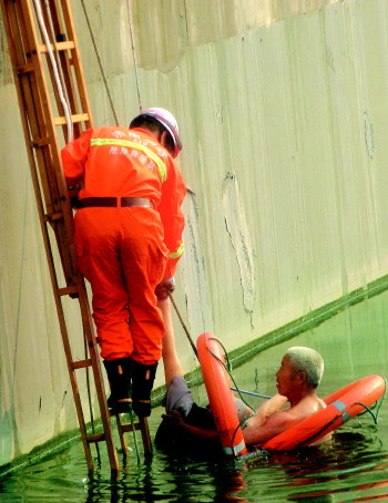 警民合力救落水老人。(梁彥飛 攝)