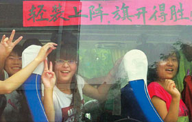 祈福!——“每門考試我都一直守著。”開考后,一位母親雙手合十站在學校門外,默念祝福,祈求孩子考試順利。