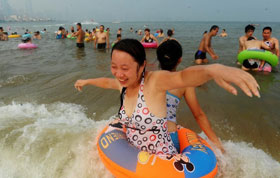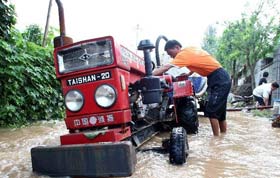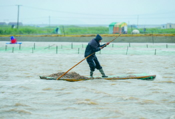據(jù)山東省氣象臺(tái)預(yù)報(bào),從8日晚間開始,“?钡耐鈬绊懖吧綎|。8日晚至10日,魯東南和半島南部地區(qū)有中雨,局部地區(qū)將有大雨。圖為受“?庇绊,浙江寧?h長街鎮(zhèn)降暴雨,當(dāng)?shù)卮罅筐B(yǎng)殖塘漫塘,8萬多畝農(nóng)田被淹。(新華社發(fā))