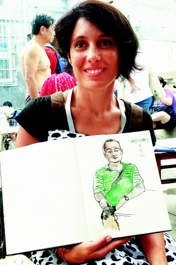 8月10日,濟(jì)南市王府池子泉水邊,迎來了十位著名的法國游記畫家,老街老巷老民俗深深打動(dòng)了這些異國藝術(shù)家,他們紛紛用手中的畫筆,描繪老街巷和泉城人。 記者 王鴻光 攝