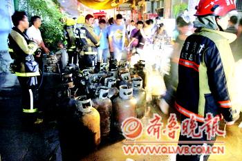 本報(bào)濟(jì)南8月16日訊 (記者 張亞楠 實(shí)習(xí)生 岳倩南) 16日晚6點(diǎn)多,濟(jì)南市中區(qū)后龍窩莊一煤氣商戶發(fā)生煤氣罐爆炸。暫未有人員傷亡消息,事故原因正在調(diào)查中。 16日晚6點(diǎn)多,轟然一聲巨響,把住在后龍窩莊一棟樓房里的曹凱嚇了一跳。沒(méi)過(guò)幾秒鐘,又是一聲炸響。“連接響了四五聲,好像樓塌了一樣。”曹凱看到爆炸地點(diǎn)是距離自己住處不過(guò)200米的一處房屋,爆炸引起的火焰把三層樓高的樹(shù)冠燒著了。曹凱趕向爆炸地點(diǎn),看到爆炸引發(fā)了三層樓高的大火,火球躥到大樹(shù)樹(shù)冠上,樹(shù)冠頂上的葉子都燒焦了。三層樓的窗戶玻璃都震沒(méi)了,空調(diào)外掛機(jī)也燒變了形。 7點(diǎn)20分許,記者來(lái)到后龍窩莊爆炸地點(diǎn),大火已經(jīng)被撲滅。街道上淌著水,一輛救護(hù)車在爆炸點(diǎn)附近閃爍著燈光。街道上擠著圍觀居民,民警把人群攔阻在爆炸點(diǎn)外圍。20多個(gè)煤氣罐被消防人員從爆炸地點(diǎn)清理出來(lái),已經(jīng)不同程度地變形。居民稱發(fā)生爆炸的一家是賣煤氣的。一居民說(shuō),“他家是賣煤氣的,剛買了輛面包車,不知道是不是拉煤氣罐用。聽(tīng)說(shuō)是面包車不知道什么原因燒了起來(lái),引燃了煤氣罐,發(fā)生了爆炸。”