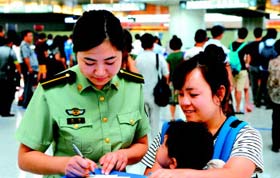 ◥救援人員用擔架將跳崖小伙抬到索道站。本報通訊員程國棟蔣韓攝