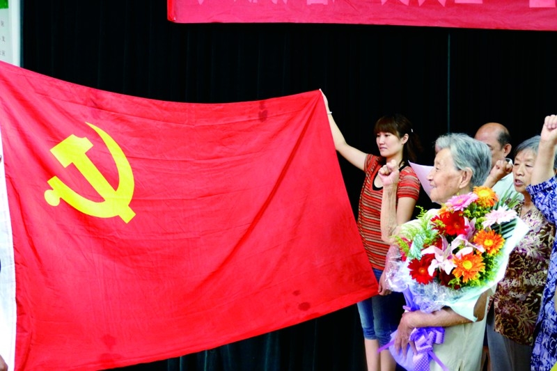 昨日,濟南畢家洼西社區居委會,82周歲的嚴靜面對黨旗莊嚴宣誓,志愿加入中國共產黨。嚴靜是社區里出了名的熱心腸老人。雖已是八旬高齡,她卻自愿擔當師范路小學學生的“守護天使”,天天去學校門口執勤;社區里要通天然氣了,她自己家不裝,卻跑前跑后聯系,讓這項千頭萬緒的工作在兩個月內完成;她每個月都有2000多元的退休金,可每個月她的錢都用來幫助別人……她不是啥了不起的人物,卻一直散發著光和熱,照亮了別人,也溫暖著大家。記者傅琪媛通訊員黃德浩攝影報道