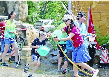 昨天(29日),在泉源文化節(jié)開幕現(xiàn)場的潑水區(qū),“驢友”們盡情享受清涼和歡樂。 (張源源 攝)