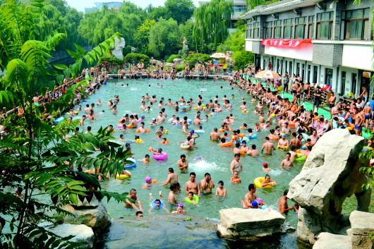 □大眾報業記者 趙 偉 報道 ▲7月6日,泉城高溫,濟南泉水浴場人滿為患。