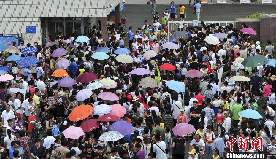 7月7日,近萬(wàn)名小學(xué)應(yīng)屆畢業(yè)生參加濟(jì)南兩所中學(xué)舉行的小學(xué)升初中考試,萬(wàn)余“小升初”陪考家長(zhǎng),忍受小暑天35℃高溫的烈日“烘烤”毅然場(chǎng)外守候。中新社發(fā) 張勇 攝