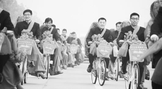 10月1日,博興縣舉辦“第三屆青年職工集體婚禮”,通過古典婚慶大典的形式充分展示傳統婚禮文化內涵,35對新人通過體驗邁火盆等傳統婚禮程序,親身感受傳統古典婚禮文化魅力。35對新人還在集體婚禮上進行自行車巡游,倡導低碳生活,共度國慶佳節。